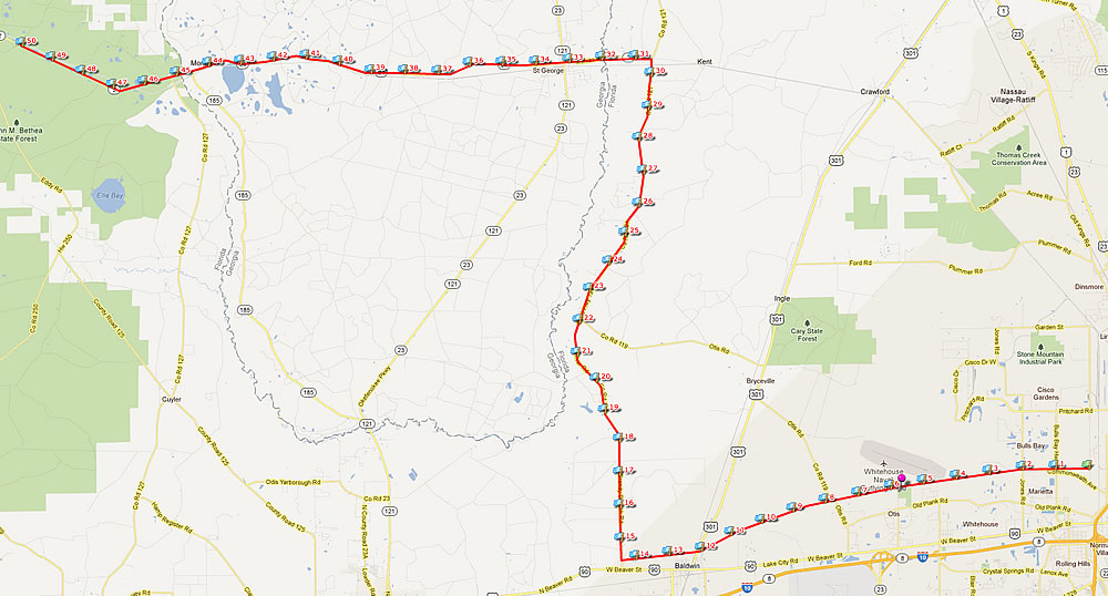 - turn right (south) on Hwy 121 to return to the Jax-Baldwin Trail